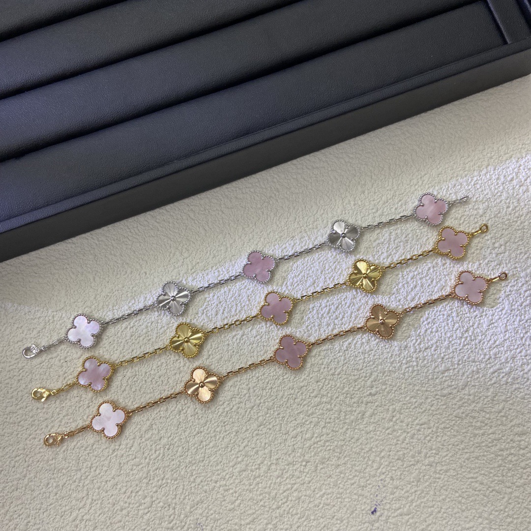 VCA laser-cut pink shell five-flower bracelet, fashion bracelet